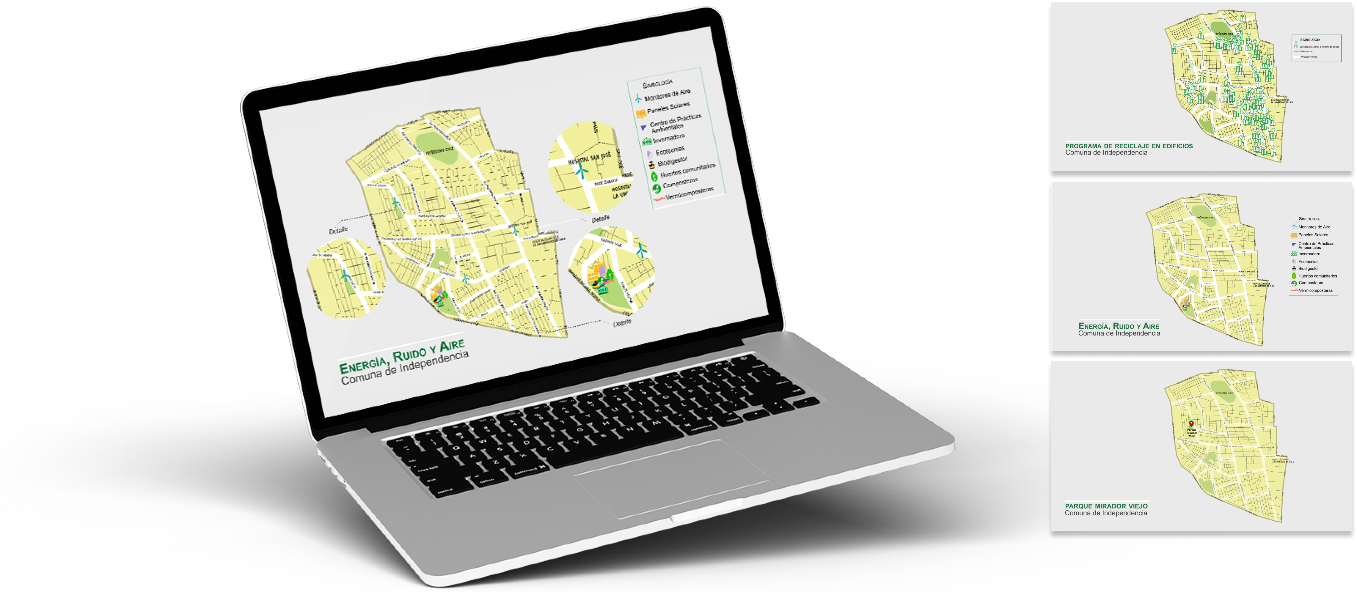 Mapas comunales entorno a puntos limpios y lugares relacionados al reciclaje dentro de la comuna.