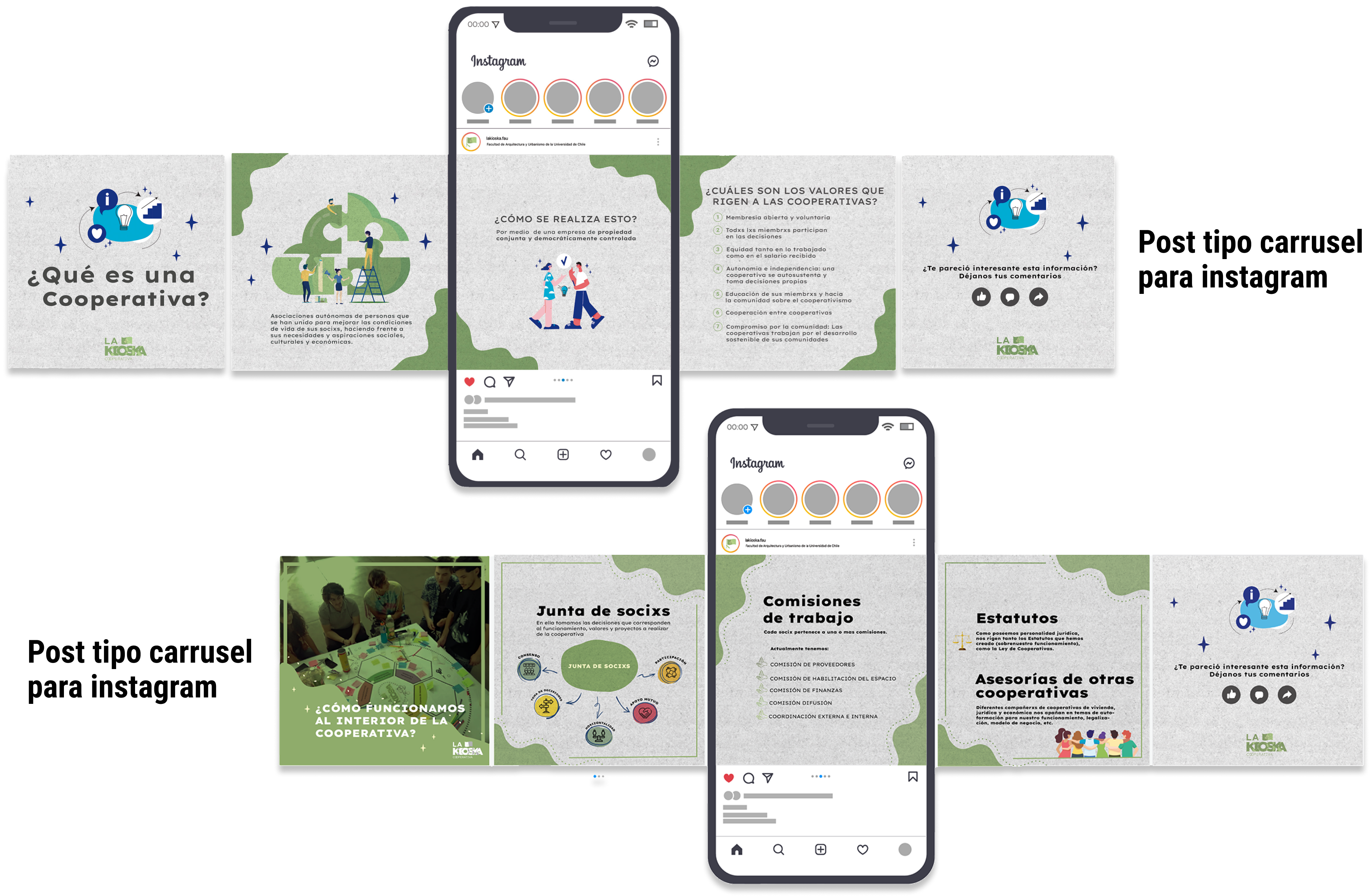 En complemento al catálogo, se hicieron piezas gráficas para subir a redes sociales (Instagram, TikTok y YouTube). Estas piezas incluyen post tipo carrusel, portadas para capsulas audiovisuales en formatos vertical y horizontal. Además se incluyeron algunos gif animados para banners de página web.